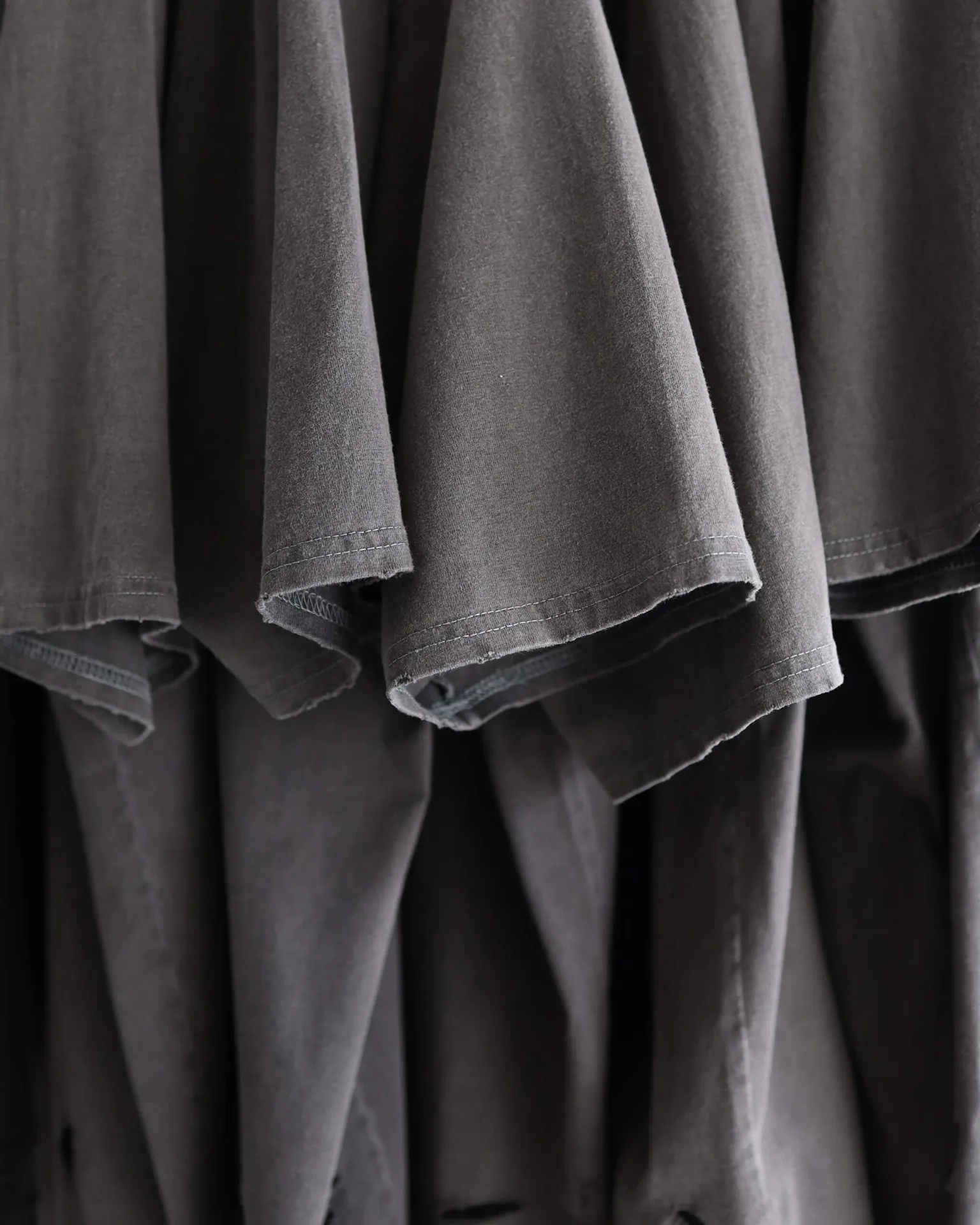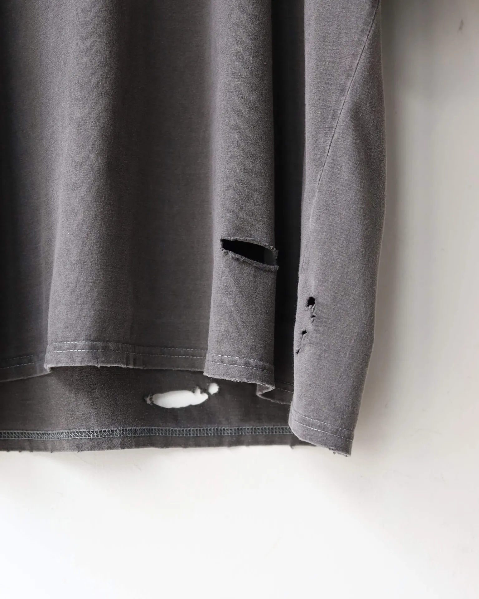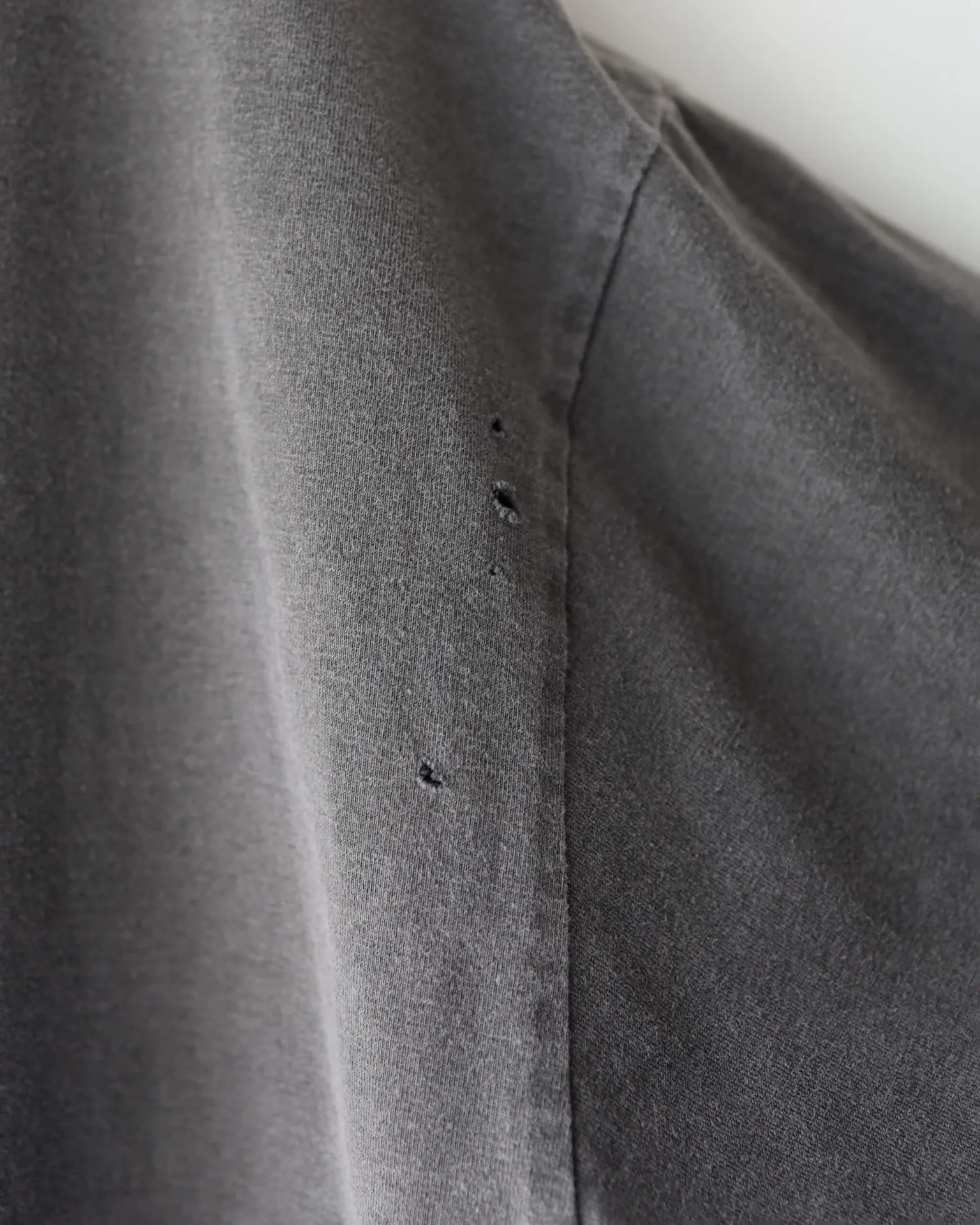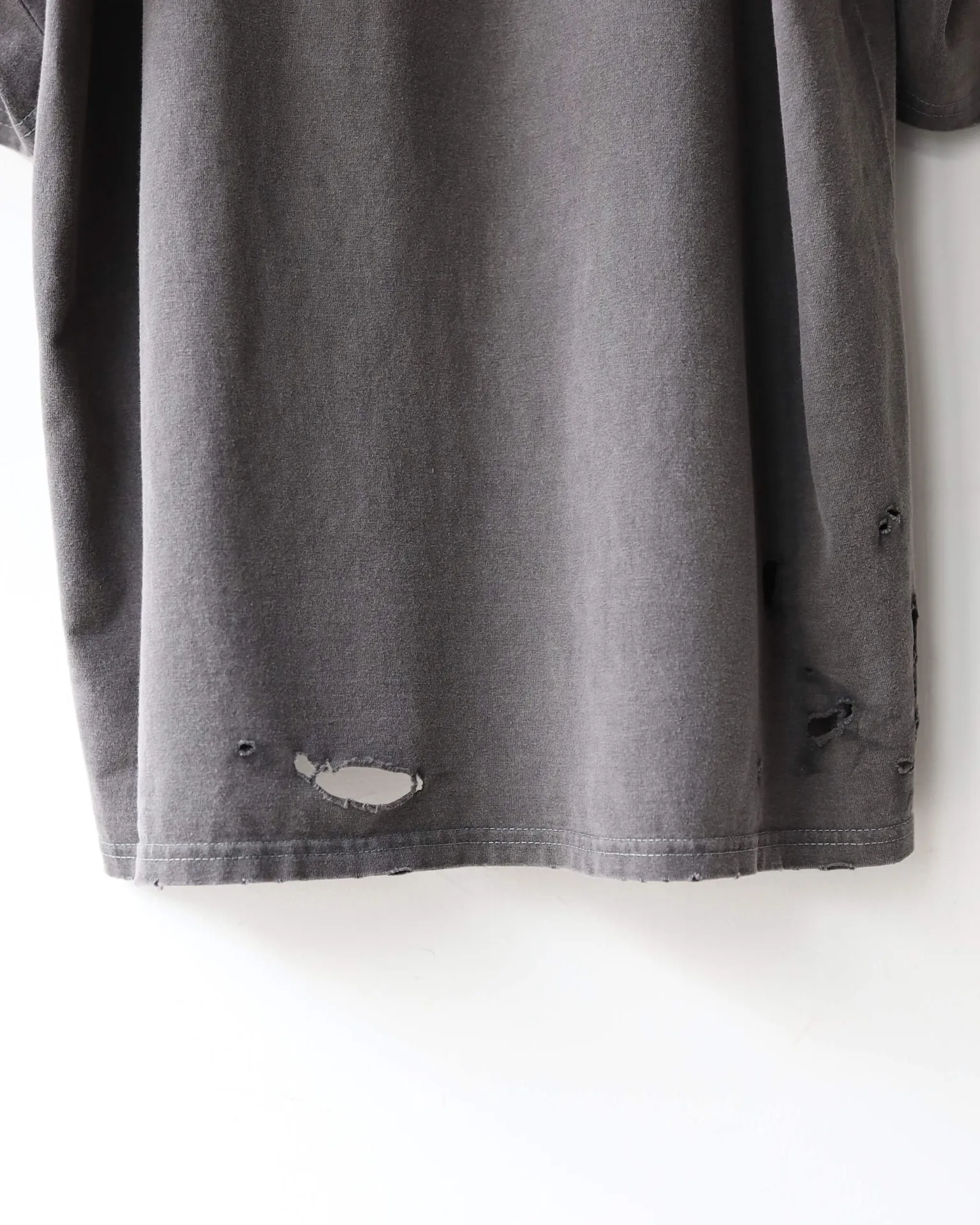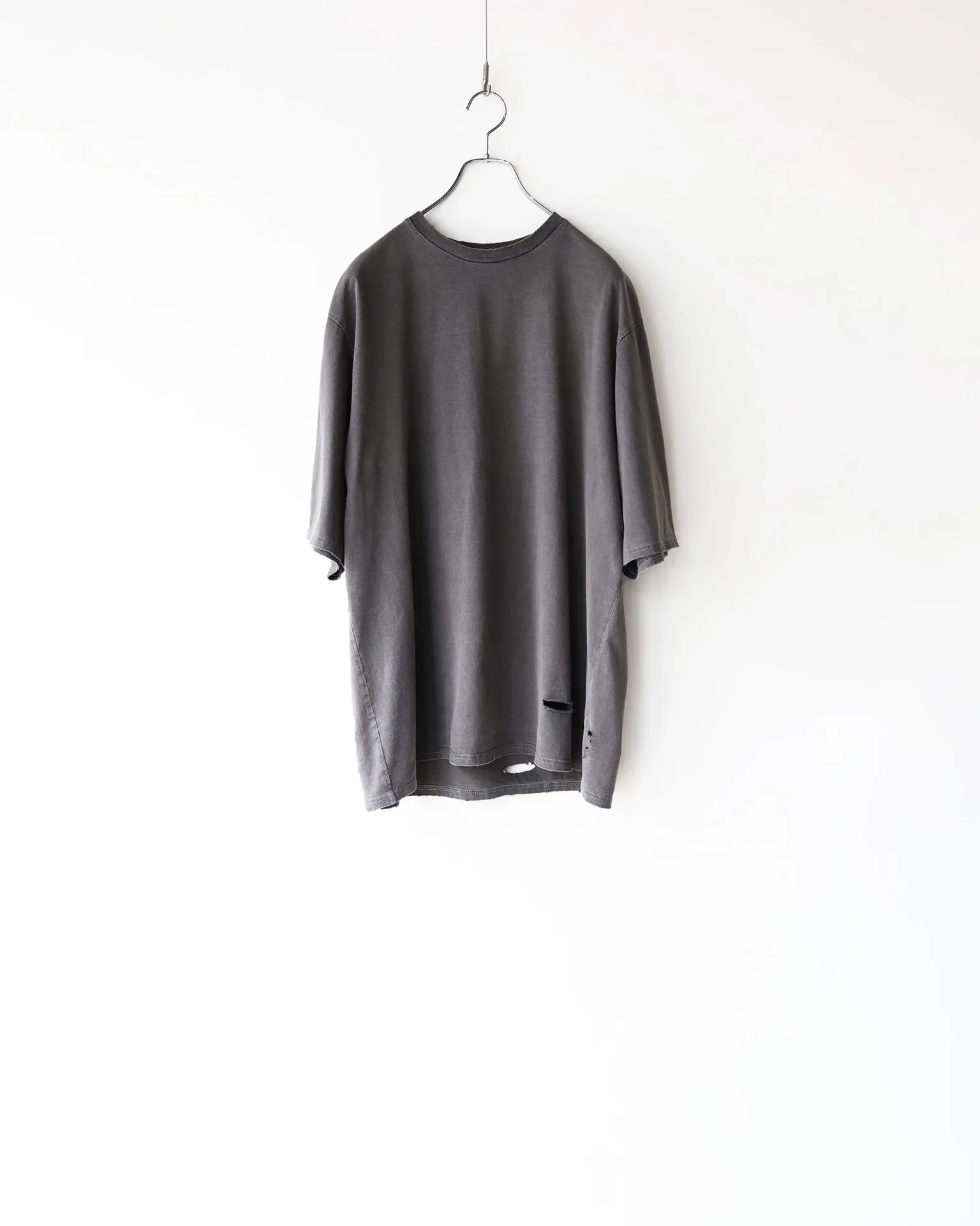 デザインを削ぎ落としたプレーンなボディに加工で遊びを加えたダメージTシャツ。