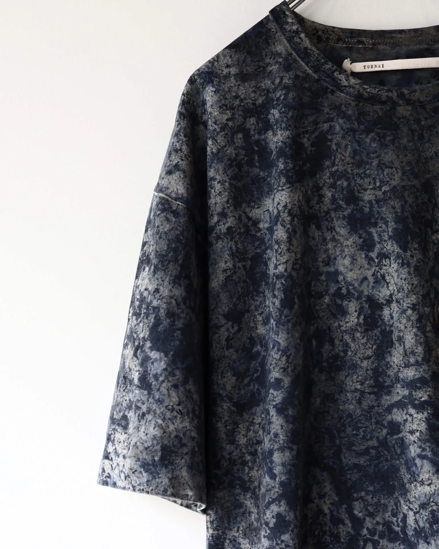 TOHNAI - HAND DYED COTTON / CREW NECK T-SHIRT "BLACK SPOTS"