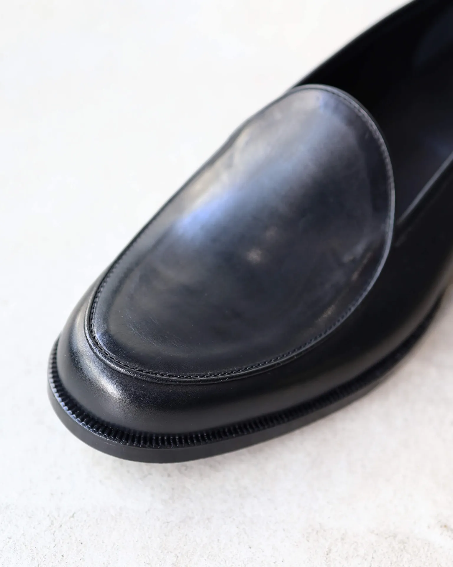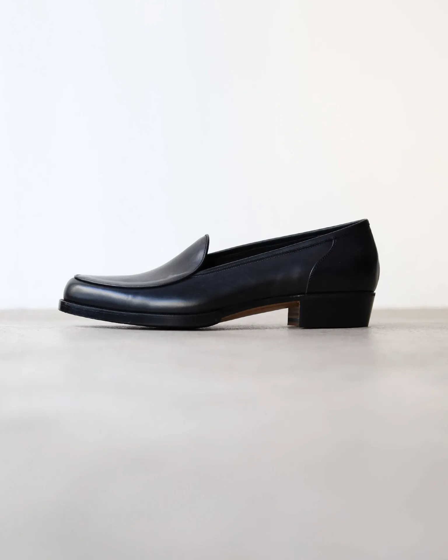 目指したのは、足入れのしやすい履き口広めのローファーでありながら、小走りでも踵が浮かないようなフィット感のある木型。