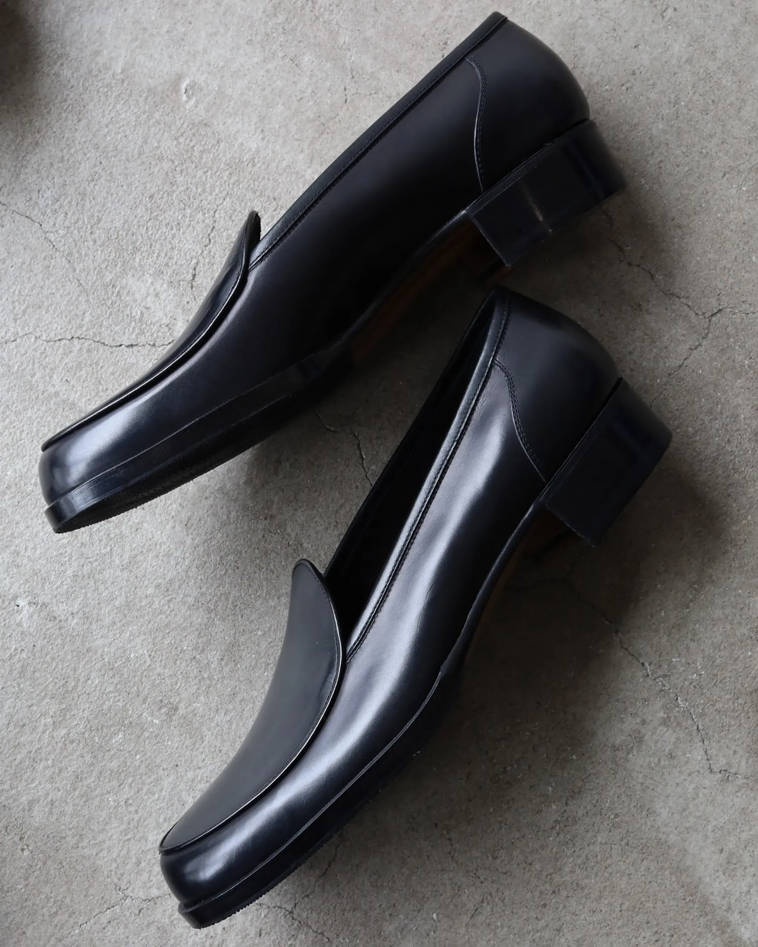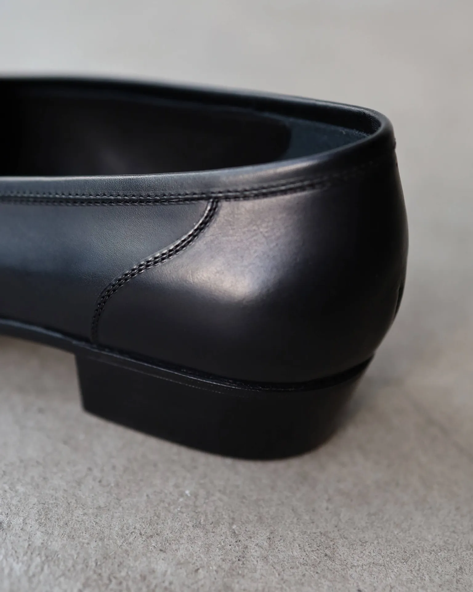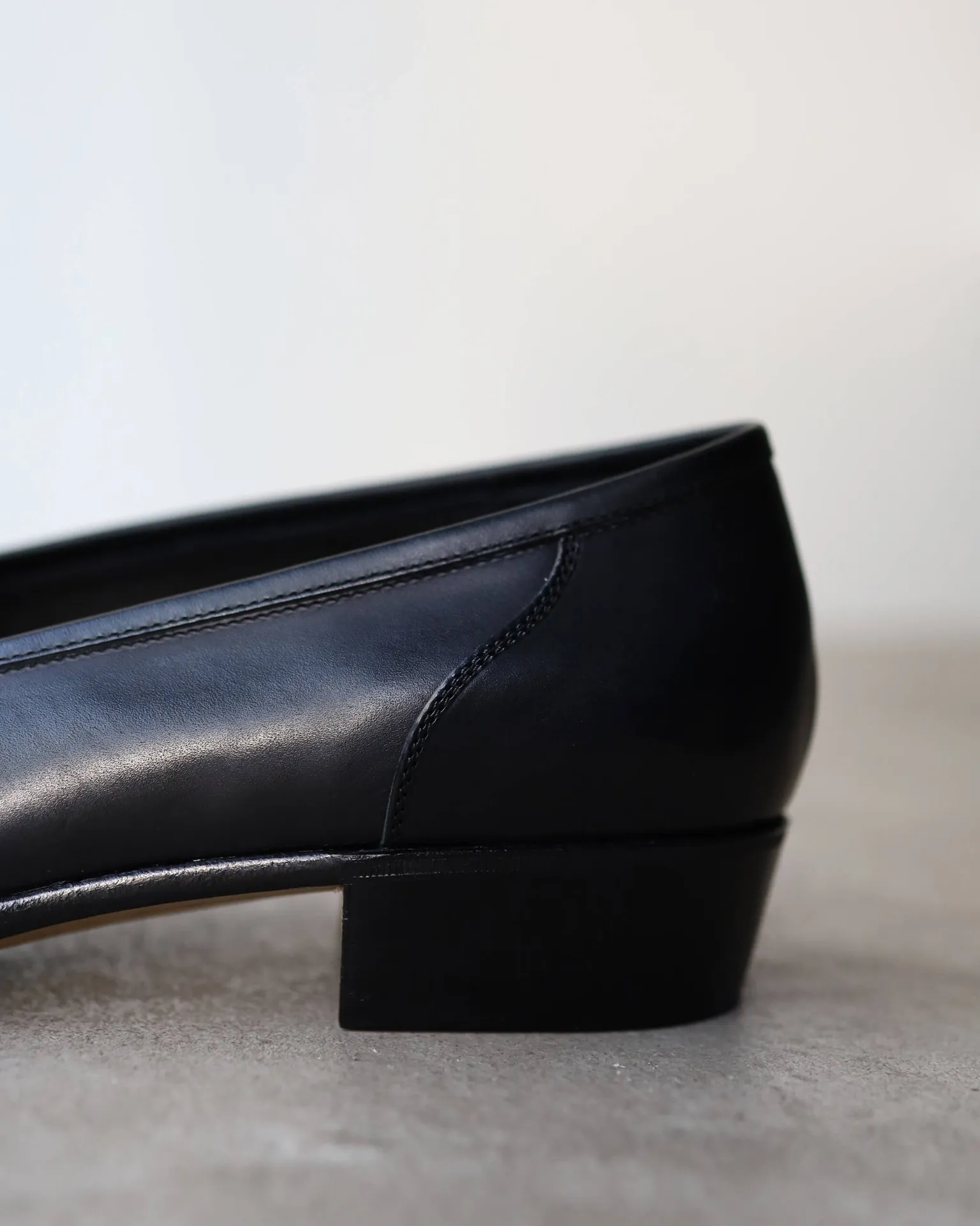 ほのかな丸みのトゥ、2.5cmの少し高めに設定しテーパーをかけたヒール、踵からトゥにかけて落差をつけた美しい直線が、端正な表情の中にもほのかに色気を感じさせます。