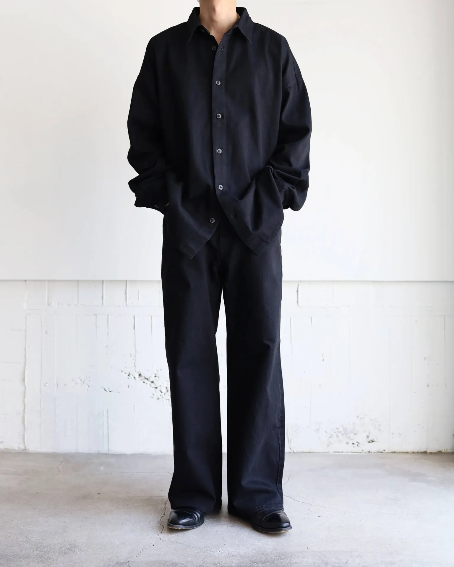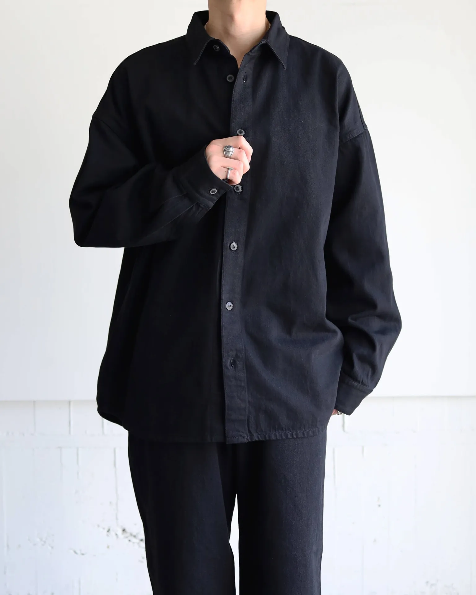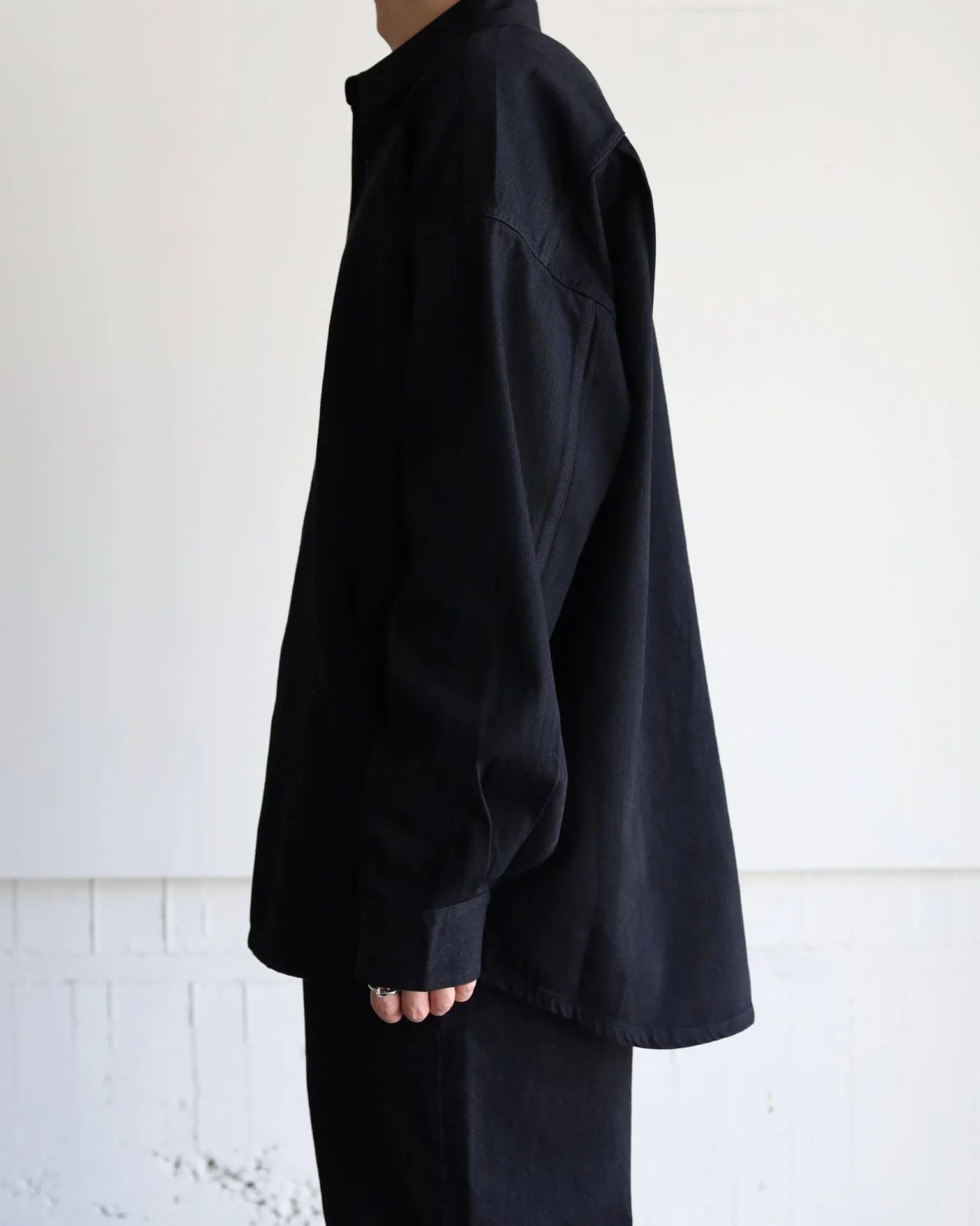 ブラックデニムの重厚な雰囲気を持ちながら、流れるような空気感を併せ持った1枚です。