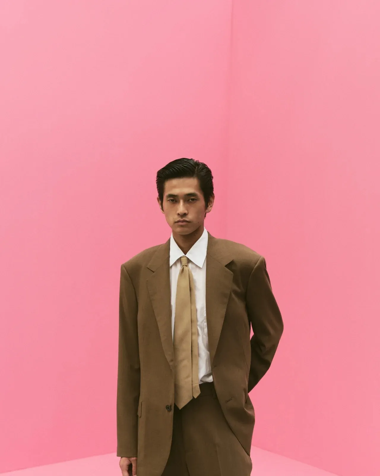 腰まわりはノータックでミニマルに仕上げながら、適度なゆとりを確保。